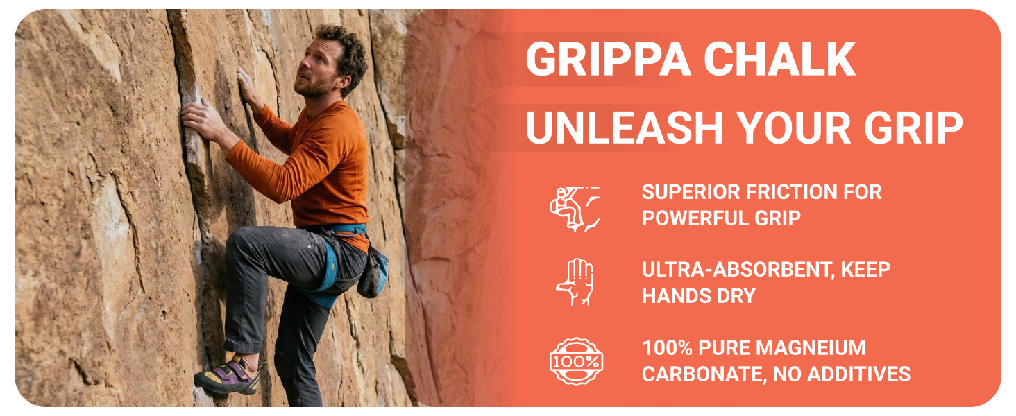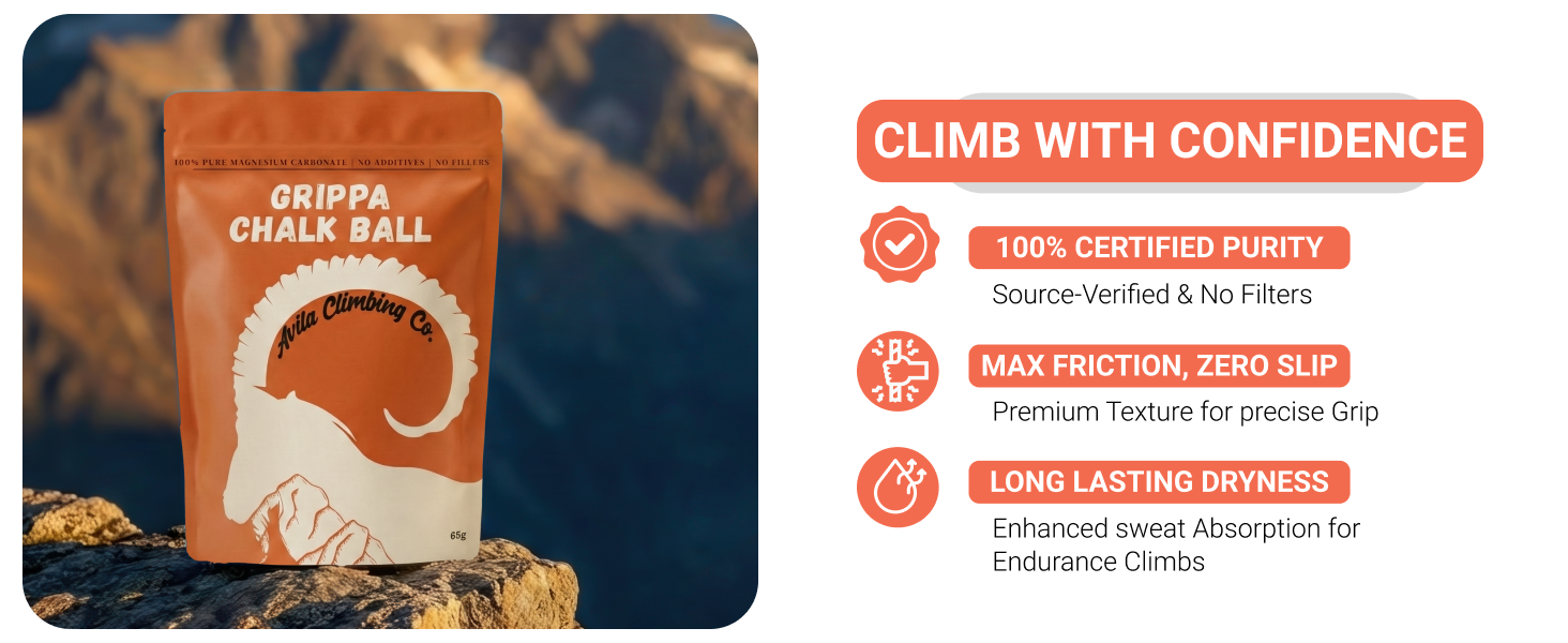 The Chalk Ball Every Gym Climber Needs: Most indoor climbing gyms require chalk balls or liquid chalk to keep walls and floors clean. The Grippa Chalk Ball meets that requirement without sacrificing grip. The snug sock design dispenses just the right amount of chalk — no dumping, no wasting, no cloud.