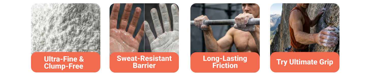 - Mess-free chalk sock design — less dust, gym-friendly • Consistent application — perfect amount every chalk-up