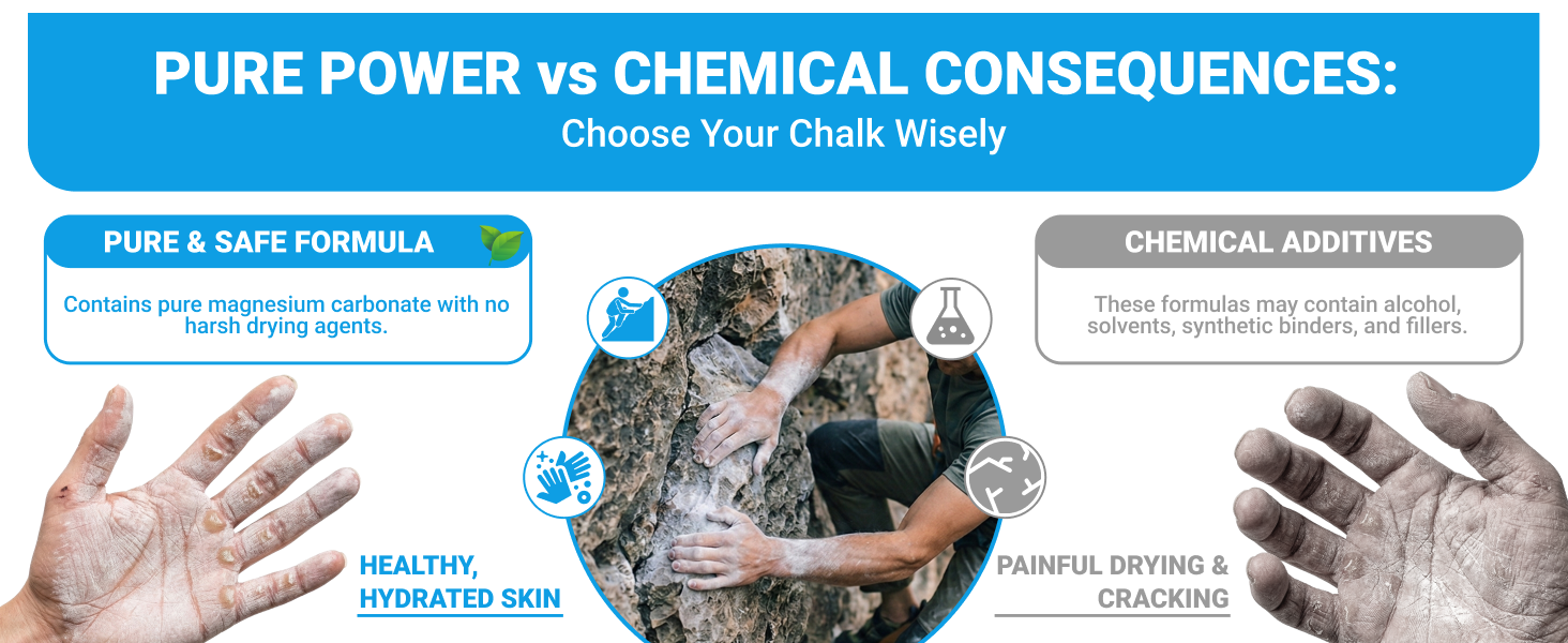 - Bulk bag options — 4-bag and 8-bag packs for serious climbers